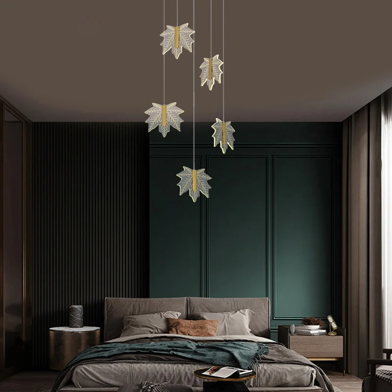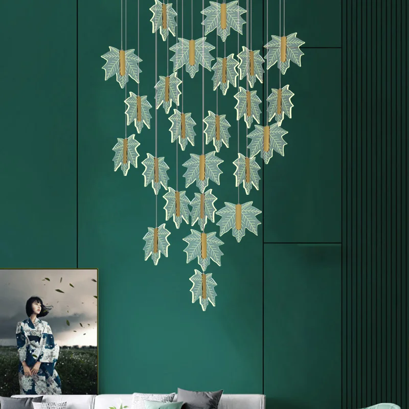 Special Offer 現代の階段のシャンデリアランプホテルロビーヴィラスパイラル階段シャンデリアデュプレックス建物ロビーカエデの葉シャンデリアランプ Discount (10%OFF) Today!