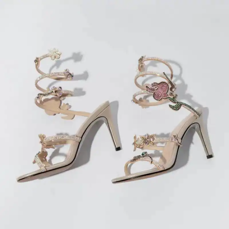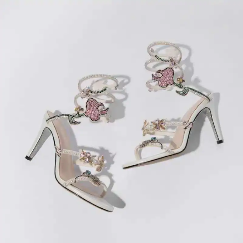 Special Offer 女性クレオフローラサンダル 7.5 センチメートル 75 ミリメートル高ヒールクレオフローラ細身のきちんとスパイラルストラップストーンクリスタルフローラル靴 Discount (20%OFF) Today!