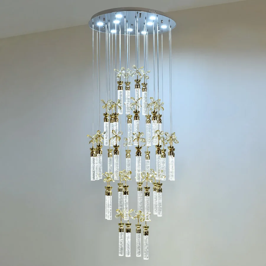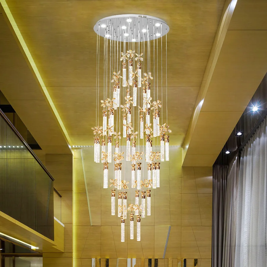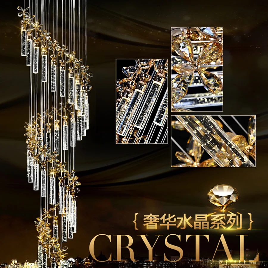Product Name: 高級フラワークリスタルシャンデリアスパイラル階段シャンデリアデュプレックス床天井ライトハンギングスパークリングゴールド階段ペンダント
