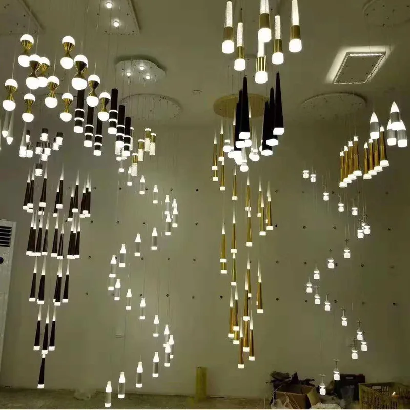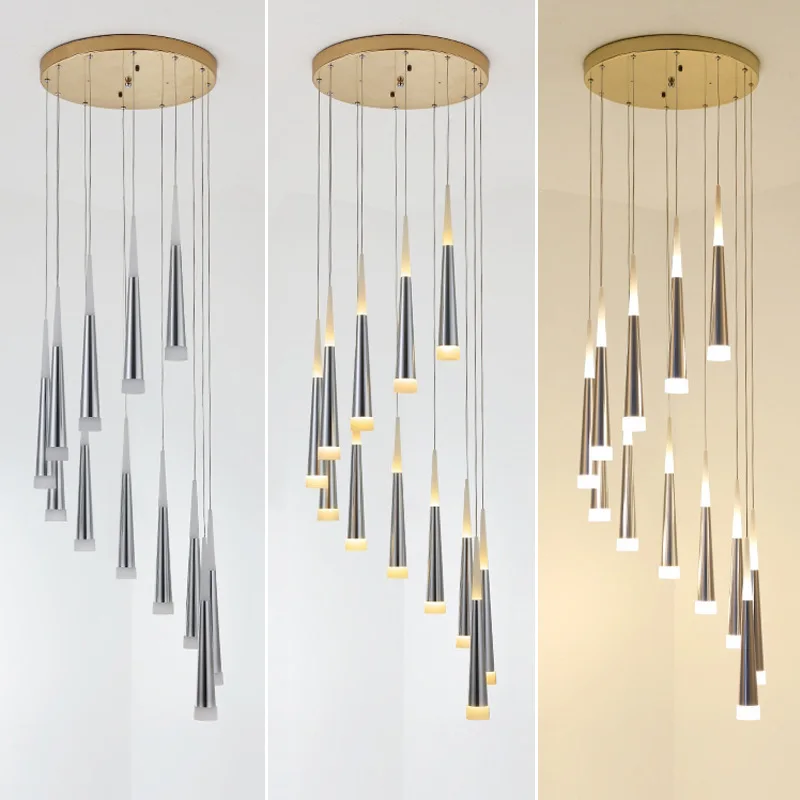 Product Name: LED つりランプダブルスパイラル階段ライトアルミ流星シャワー円錐つりランプリビングルームダイニングルームのベッドルーム